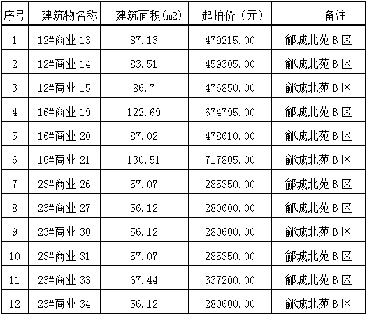 1月10日夏津縣鄃城北苑商業(yè)房、夏津高莊新村小區(qū)商品房、輔助用房車庫、鄃城新苑A區(qū)G3號樓三層房產(chǎn)租賃權(quán)拍賣公告